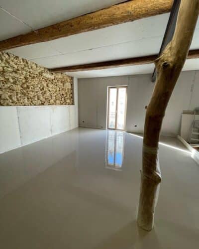 Dans le cadre de l'activité complémentaire de finition, nous proposons une solution de polissage pour la Chape Liquide ®. Nous avons réalisé cette prestation dans une habitation située à Le Pouget. Cette finition a permit d'obtenir une surface lisse, uniforme et esthétique. Nous avons réalisé un polissage précis et méticuleux, offrant ainsi une finition de qualité supérieure. Cette étape finale a apporté une touche de sophistication à la chape, mettant en valeur le sol de l'habitation.
